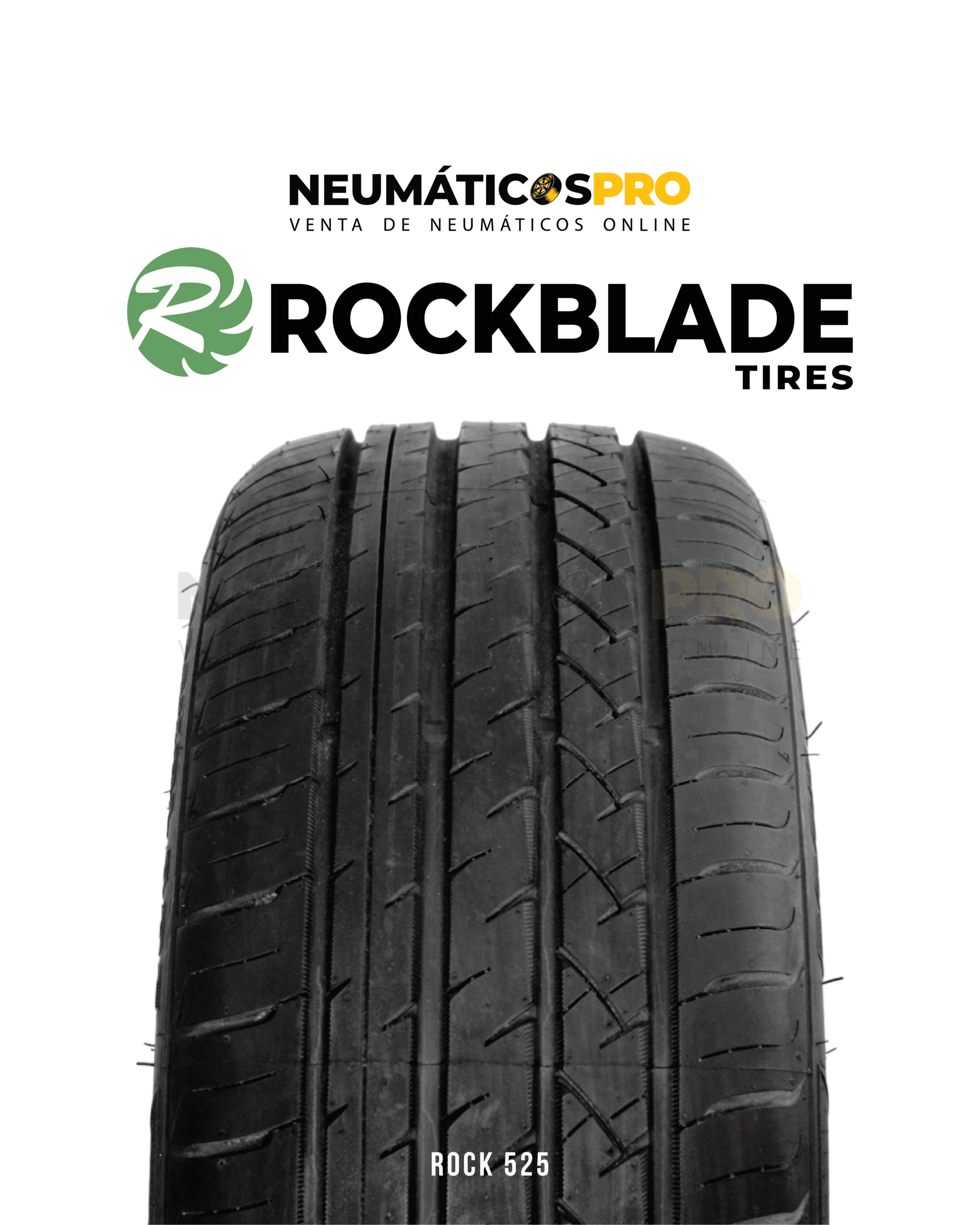 Neumático de turismo Rockblade ROCK 525 XL: diseño de 5 costillas con cuatro canales longitudinales para evacuar agua, hombros rígidos para mejor estabilidad en curvas y paso variable que reduce el ruido. Compuesto con sílice para mejor frenado en mojado y desgaste parejo. Construcción XL (Extra Load) reforzada para mayor capacidad de carga y durabilidad. Ideal para uso ciudad–autopista todo el año.